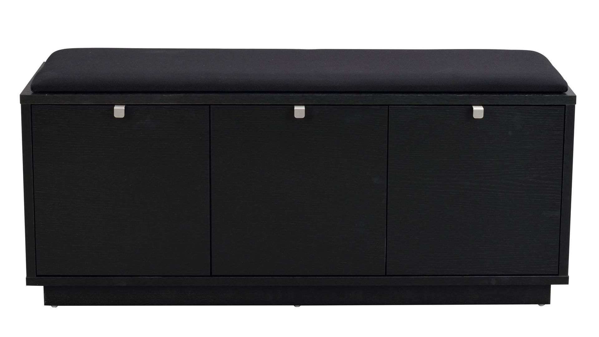 Confetti sittbänk i svartbetsad ek. Praktisk och stilren sittbänk med tre rymliga lådor som tar hand om förvaringen. Ingår i hallserien Confetti.