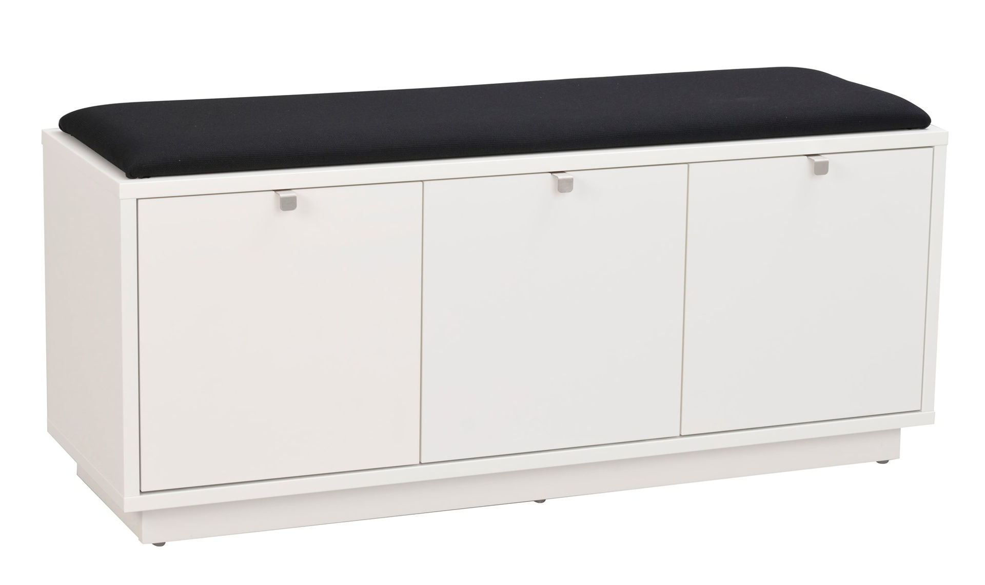 Confetti sittbänk i vitlackad MDF. Praktisk och stilren sittbänk med tre rymliga lådor som tar hand om förvaringen. Sittbänken ingår i hallserien Confetti.