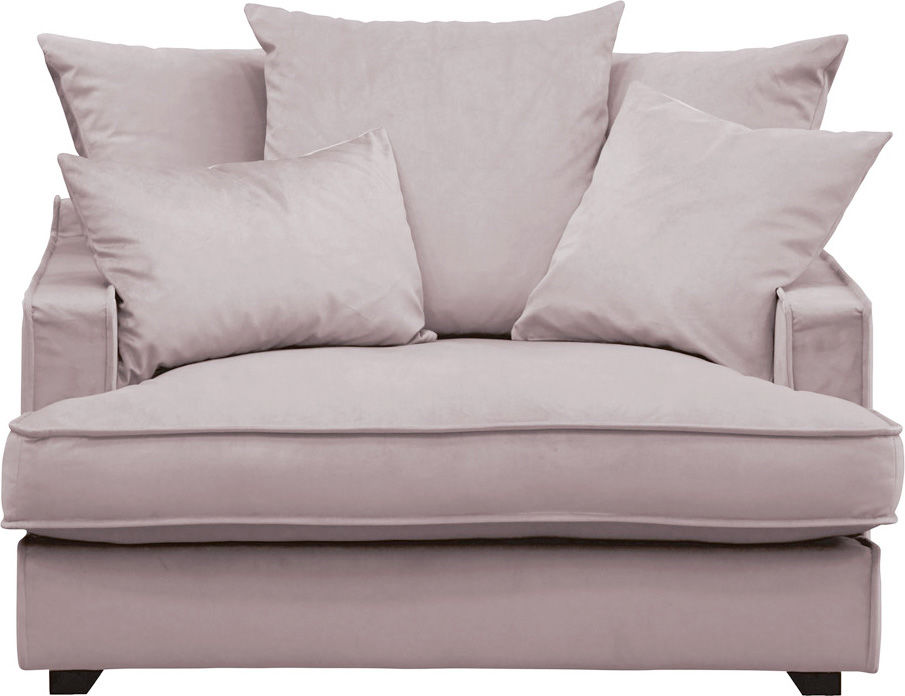 En härlig fåtölj i ett mjukt rosa sammetstyg med generös sittyta och fantastisk komfort, som gjord för dig som vill sitta både djupt, mjukt och snyggt! Träben finns i vitlack, svartlack, oljad ek, vitpigmenterad ek och oljad valnöt.