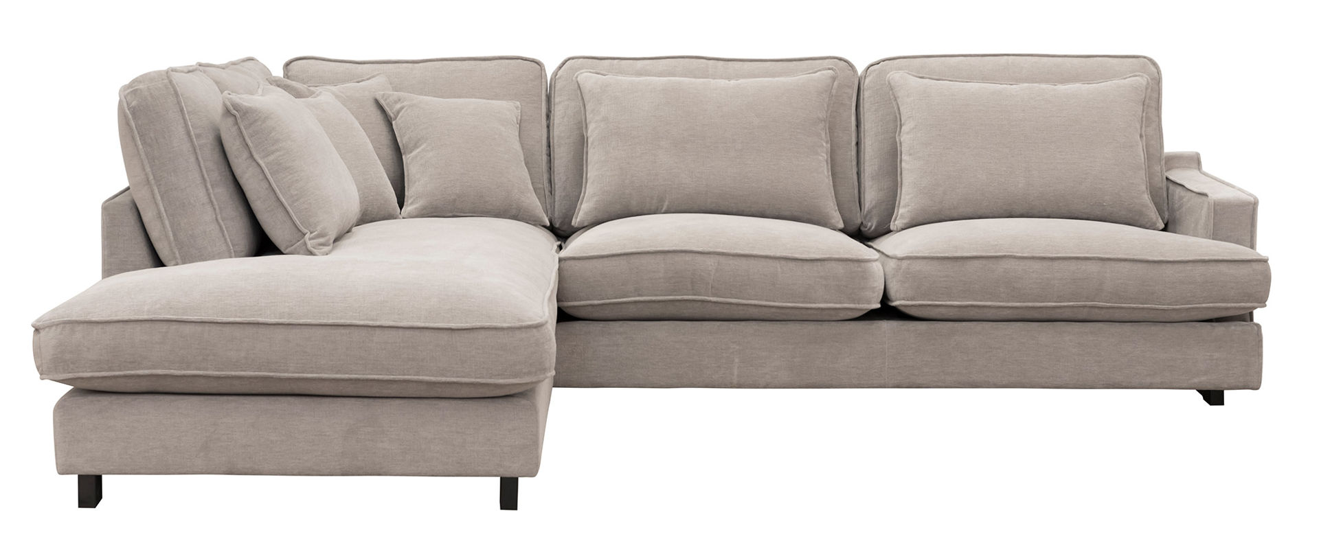 ESTELLE Casual Hörnsoffa DIV V m öppet avslut vänster traditionella ryggkuddar tyg More Rabbit/sv ben