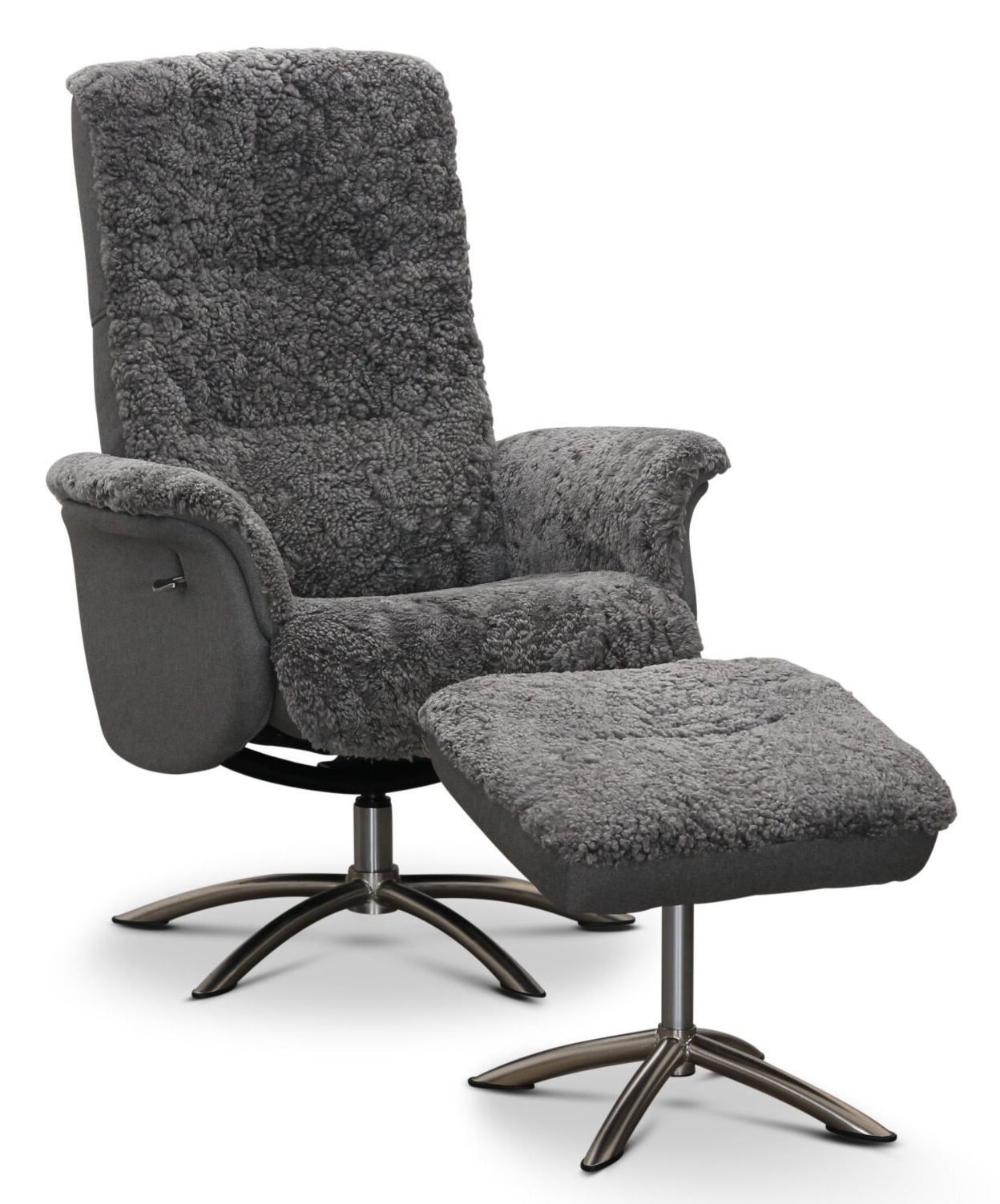HEMSE Snurrfåtölj med pall, fårskinn grafit/tyg Maison 32
