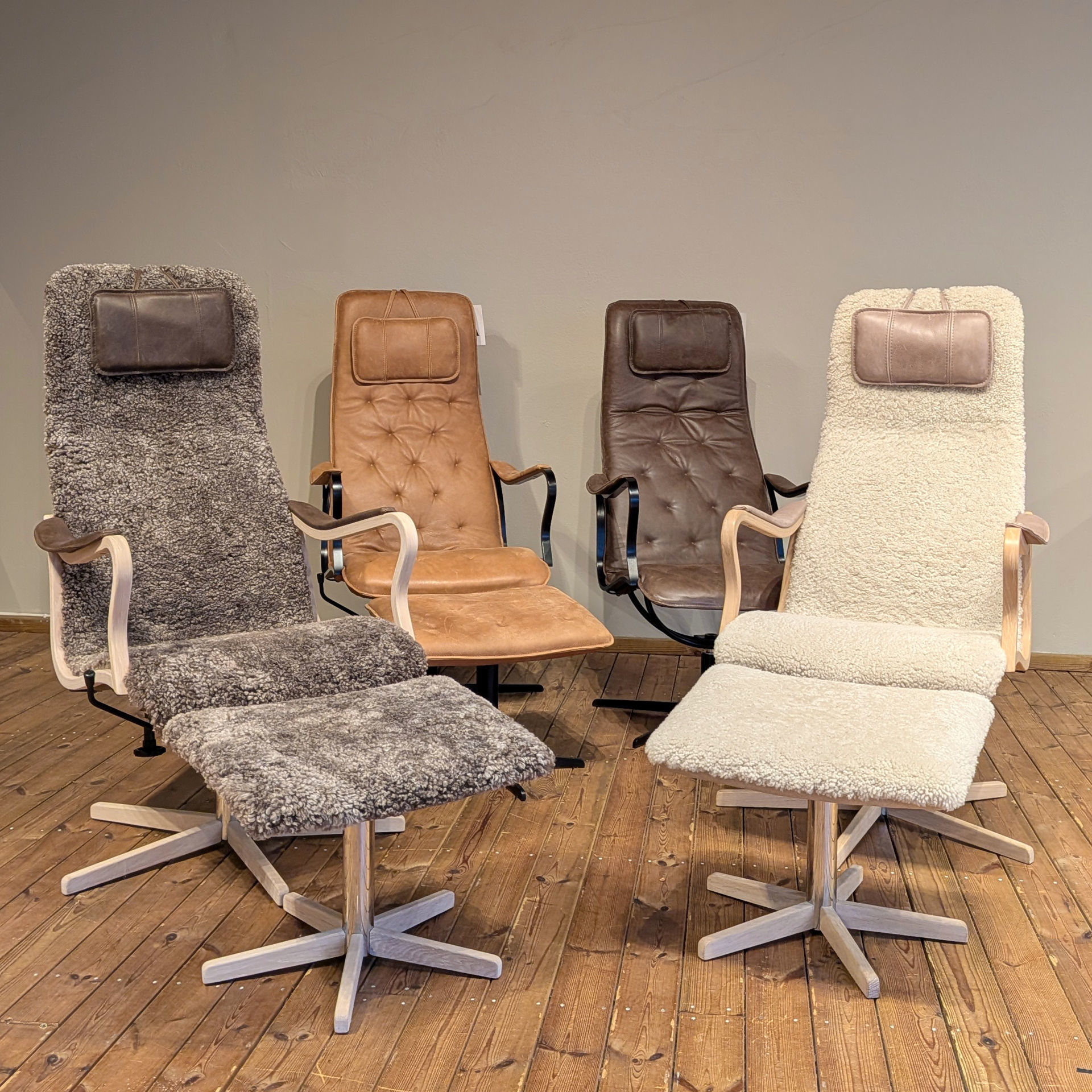 Förutom att Jack går att få i alla Bröderna Anderssons tyger, läder och fårskinn så finns den i två versioner, METALL och WOOD. Fåtöljerna går även att få med eller utan gungfunktion.
