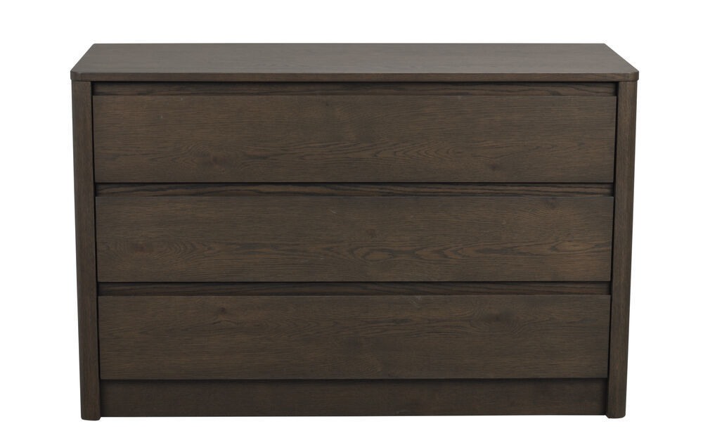 Melstone är en byrå i brunoljad vildek med genomgående hantverkskänsla och mjuka former. Byrån har infrästa handtag i massivt trä, en detalj som både är funktionell och estetiskt tilltalande. Alla delar är fanerade med rundade kanter för ett mjukt och modernt uttryck, och byrån vilar på en upphöjd sarg som ger en lätt, svävande känsla. Den dolda mjukstängande funktionen på lådorna förstärker den genomarbetade känslan. Melstone finns i flera utföranden: som byrå, högt sideboard och ett lägre sideboard.