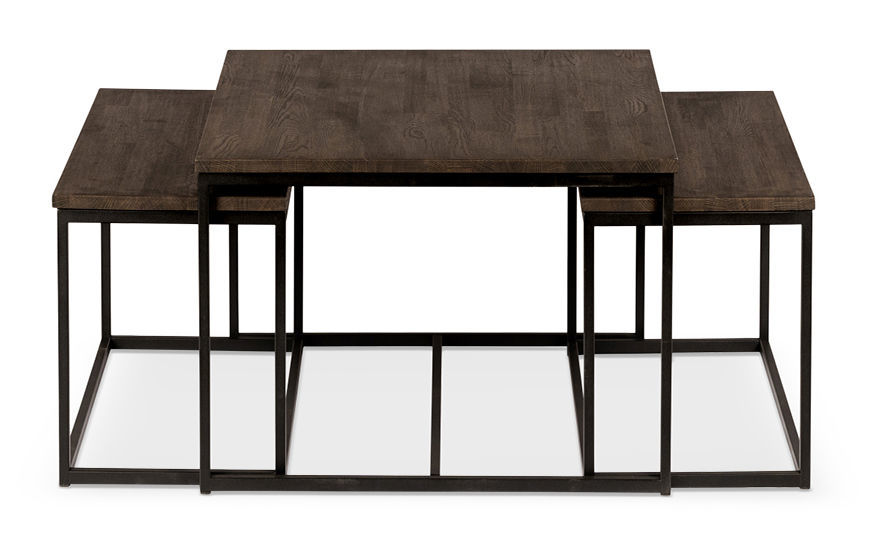 Trente är ett stilrent och lättplacerat satsbord bestående av tre bord i rökoljad massiv ek med ben i svart metall. Den mörka träytan tillsammans med det svarta underredet skapar en modern känsla som passar i de flesta hem. Satsborden kan användas tillsammans som soffbord eller placeras separat som sidobord, vilket gör Trente till en flexibel möbel för både små och större rum. Finns även i vitoljad ek.