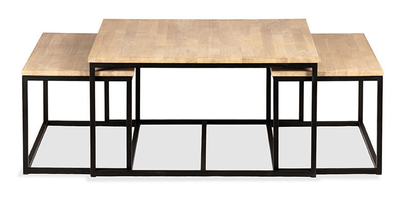 Trente är ett stilrent och lättplacerat satsbord bestående av tre bord i vitoljad massiv ek med ben i svart metall. Den ljusa träytan tillsammans med det svarta underredet skapar en modern och skandinavisk känsla som passar i de flesta hem. Satsborden kan användas tillsammans som soffbord eller placeras separat som sidobord, vilket gör Trente till en flexibel möbel för både små och större rum.