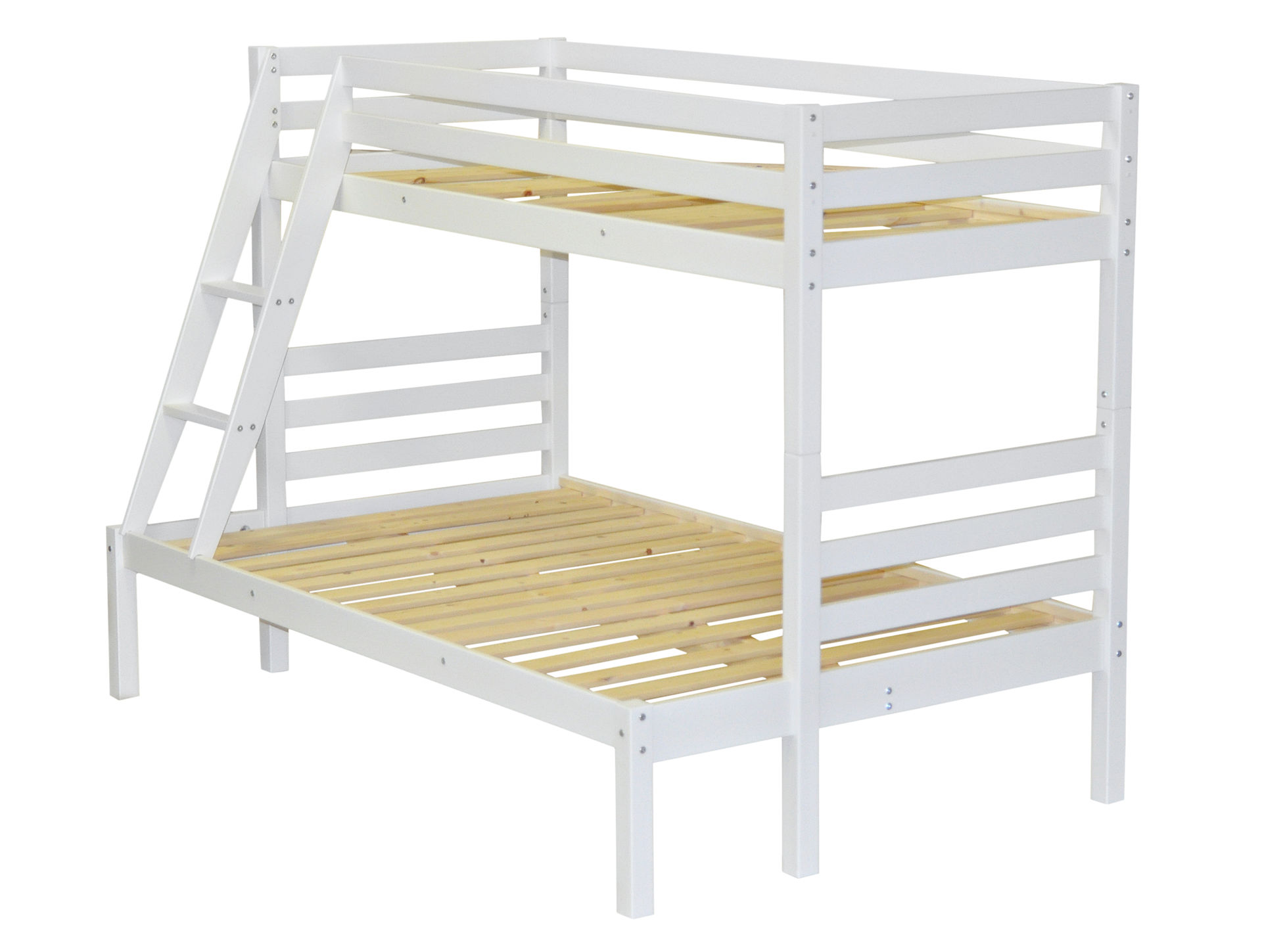 Familjesäng med extra bred underslaf. Klassisk våningssäng som passar perfekt i barnrummet eller i sommarstugan. Måtten mellan bäddarna är 76 cm.