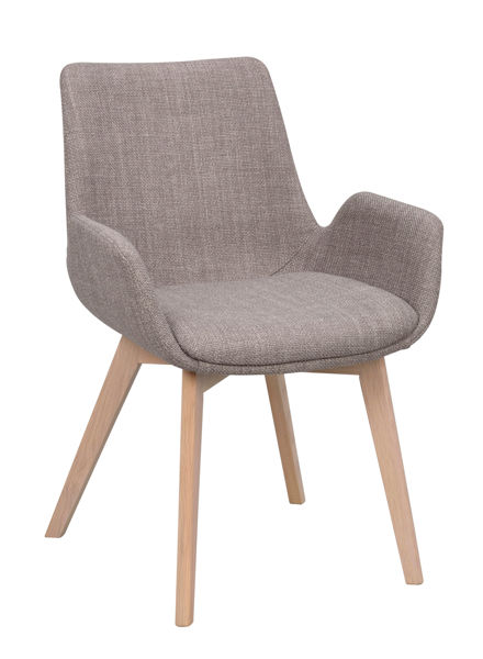 Modern och tidlös karmstol med nätt karm som gör den ombonad att sitta i. Med skandinavisk design och hög kvalitet blir Drimsdale en hållbar stol över tid. Finns i tre tyger samt fyra färger av massiva träben.