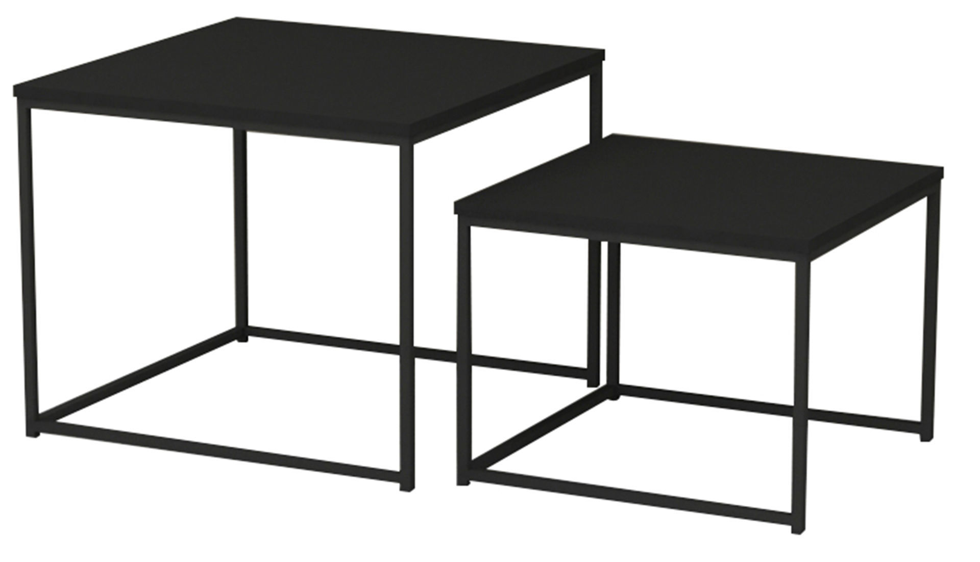Dudos har en kvadratisk bordsskiva i svartbetsad ekfanér och en stilren svart metallstomme. Setet består av två bord — ett större med 55x55 cm och höjd 45 cm och ett mindre med 45x45 cm och höjd 35 cm — vilket gör det lätt att anpassa möbleringen efter behov; båda bord kan användas tillsammans eller var för sig. Dudos är det perfekta valet för dig som vill ha en flexibel möbel med klassisk känsla — idealisk som soffbord, avlastningsbord eller som sidobord bredvid fåtöljen.