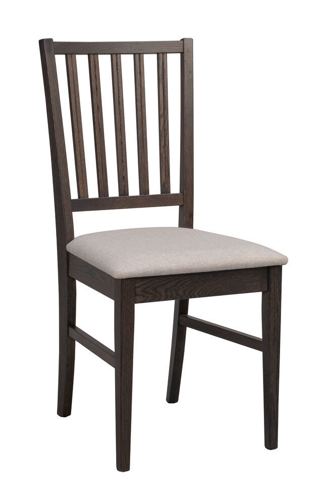 Stomme i massiv lackad mörkbrun ek med sits i beige tyg.