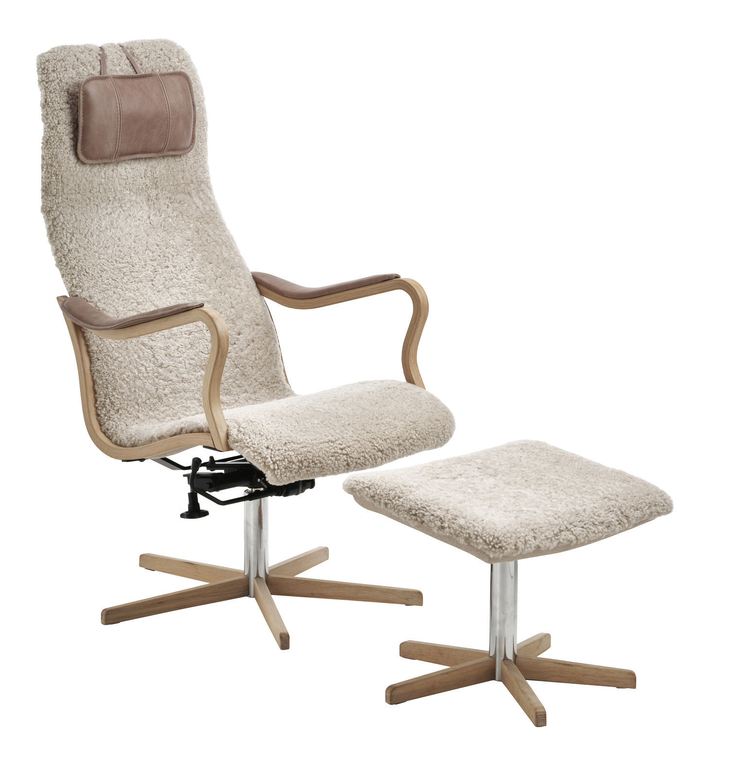 JACK WOOD Fåtölj med gunga, inkl pall EK fårskinn SL Moonlight, Vintage Taupe, Facet 16, vitpigm.ek/krom PAKETPRIS
