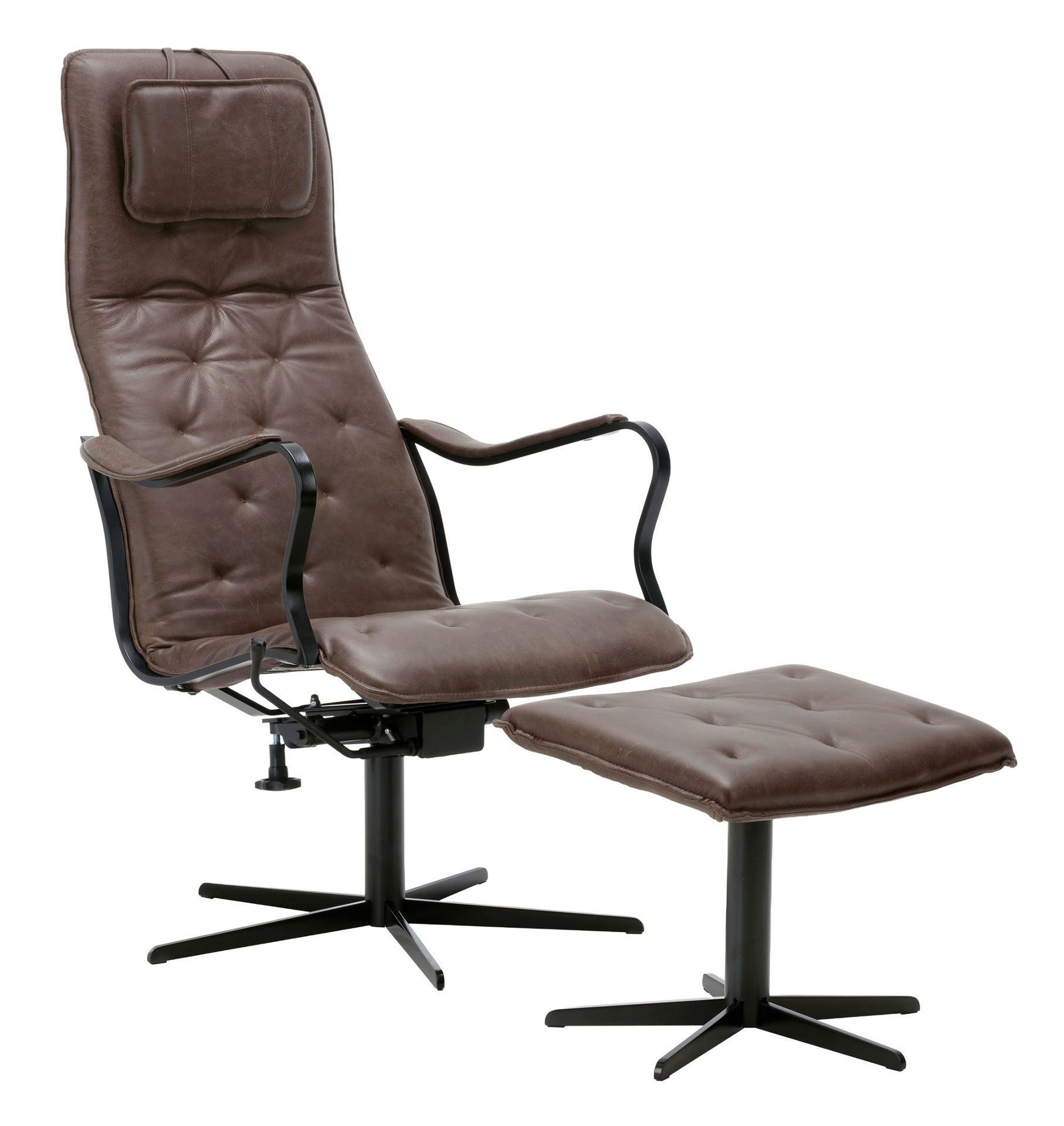 Bild på JACK METALL Fåtölj utan gunga, inkl pall läder Vintage Brown PAKETPRIS