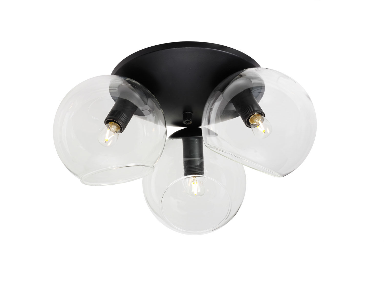 Laholm taklampa är en snygg lampa med dekorativ svart metallstomme. Har tre stycken klara glaskulor som ger ett härligt ljus till rummet.