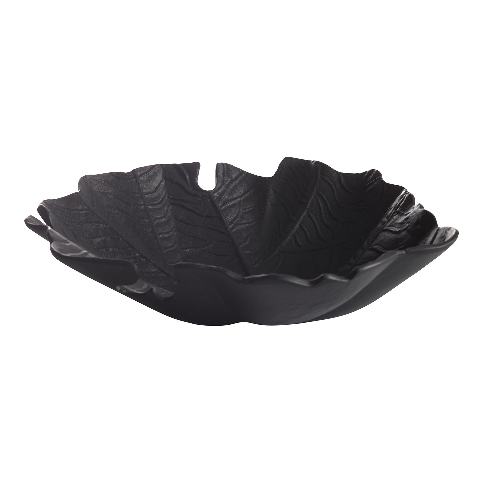 En dekorativ skål/fat i svart aluminium. Passar som prydnad eller servera torr mat på. Finns även i en större storlek.