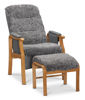 Elektrisk fåtölj med manuell justerbar rygg och elektrisk liftfunktion i sitsen. Finns även som manuell fåtölj med justerbar rygg. Till båda varianter ingår fotpall. Stina finns i flera tyger och färger.