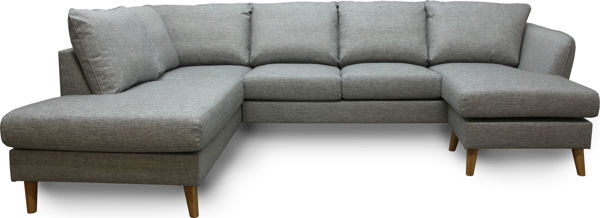 TRENTON Hörnsoffa A3D m divan + öppet avsl vä tyg Rocco grå 281/ek ben
